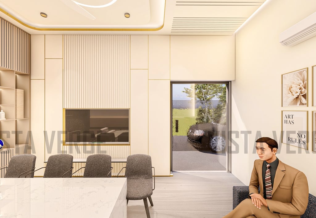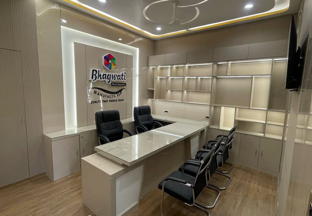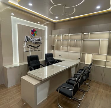 hagwati Office is a modern corporate workspace designed to reflect sophistication and brand identity. The interiors blend warm tones, sleek furniture, and smart storage solutions, creating an environment that is both professional and welcoming. With a dedicated meeting area, ergonomic seating, and a strong visual brand presence, this office is tailored for productivity and collaboration while maintaining a refined aesthetic.